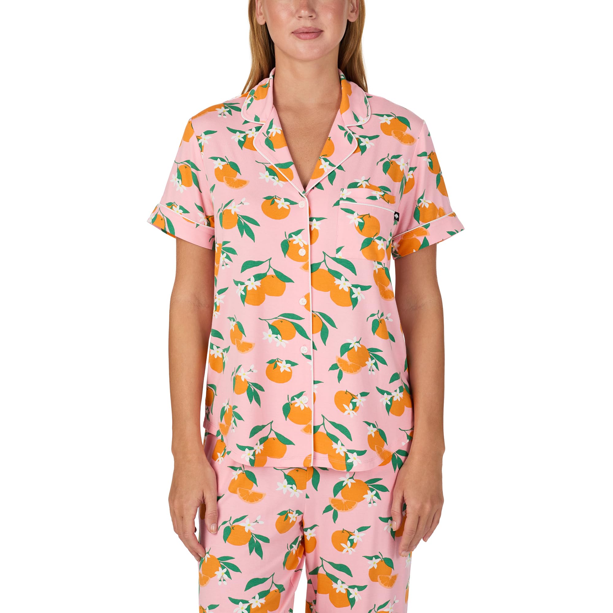 kate spade new york Pajamas for Women 2 Piece Set - Comfy Modal Notch Collar Short Sleeve Button Top & Cropped Pants, Squeeze of the Day, Medium