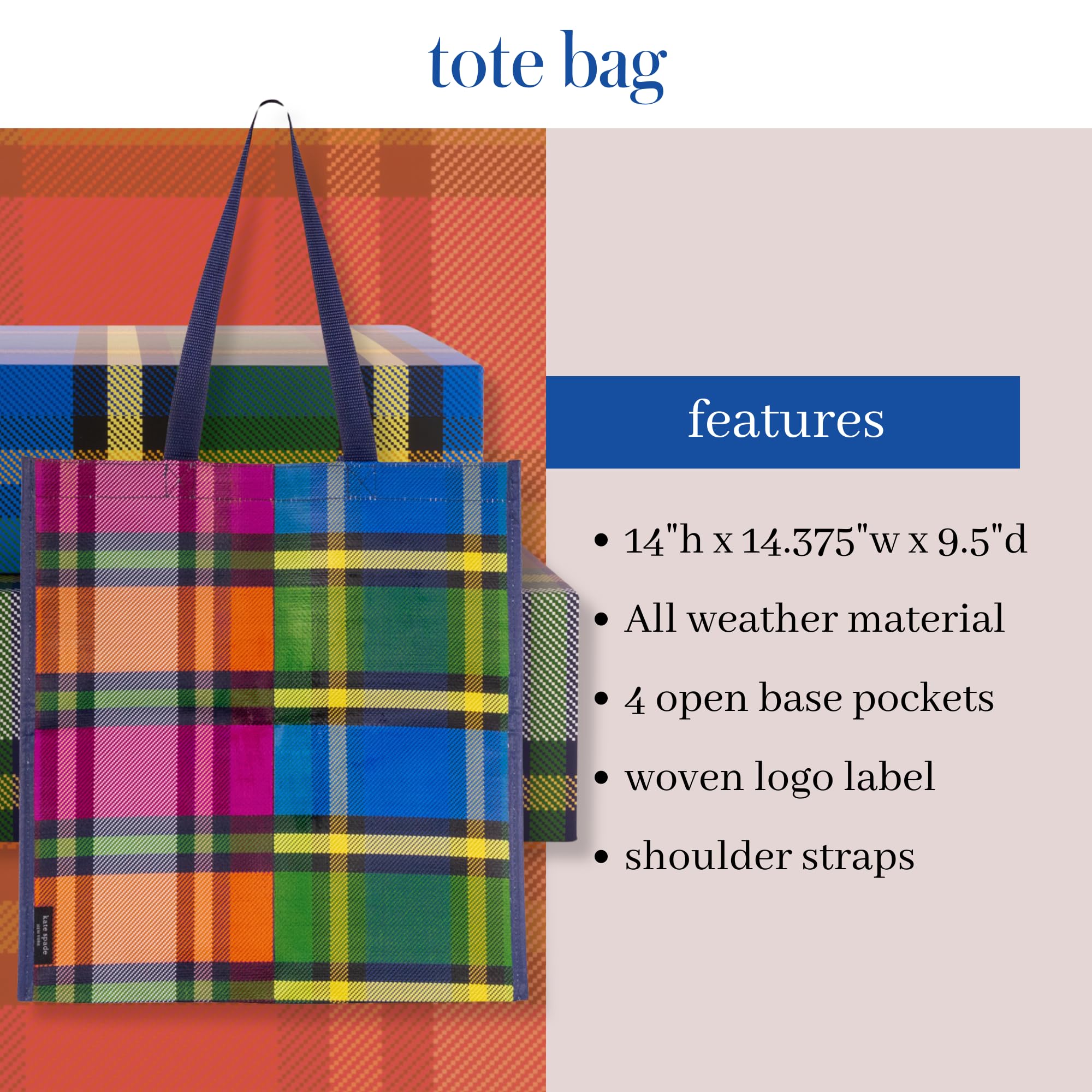 - Pretty & Practical: Make a stylish statement with this kate spade new york grocery tote featuring a fun Grand Plaid Duo pattern.
