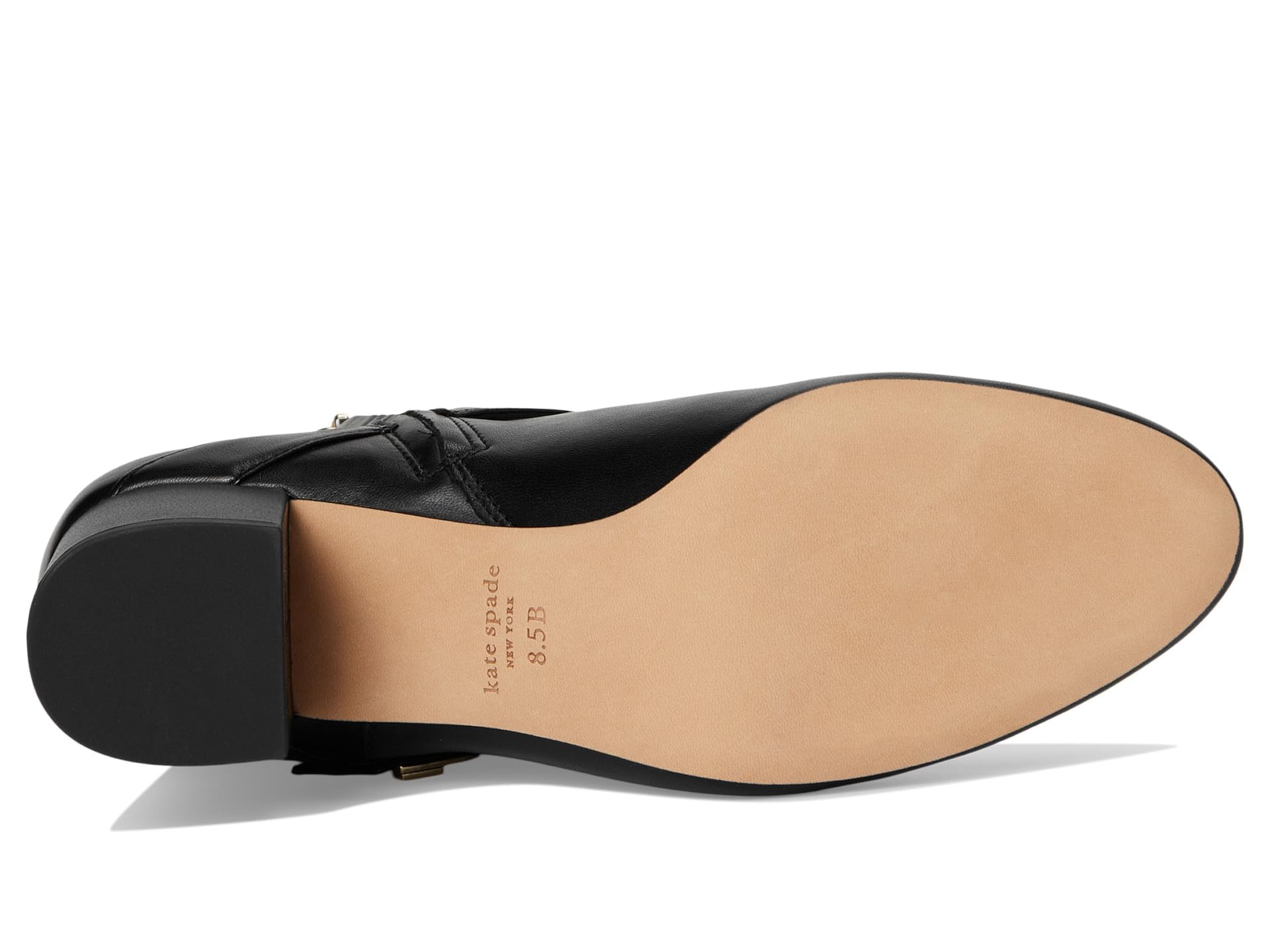 - MATERIALS: Leather upper, leather and textile lining, and gold-tone metal accents.